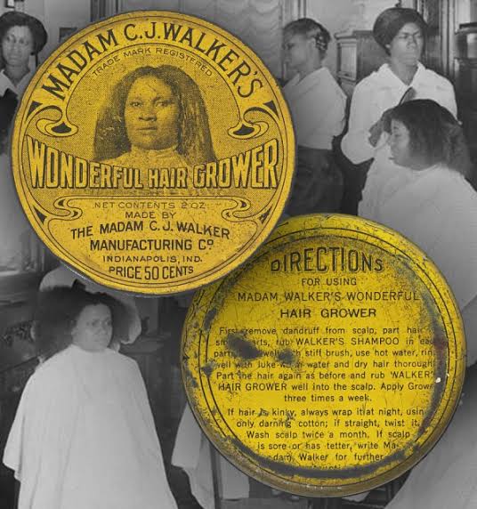 Após seu casamento com Charles Walker, em 1906, Sarah ficou conhecida como Madam C. J. Walker. Ela se comercializou como uma cabeleireira independente e varejista de cosméticos. (“Madam” foi adotada por mulheres pioneiras na indústria da beleza francesa).