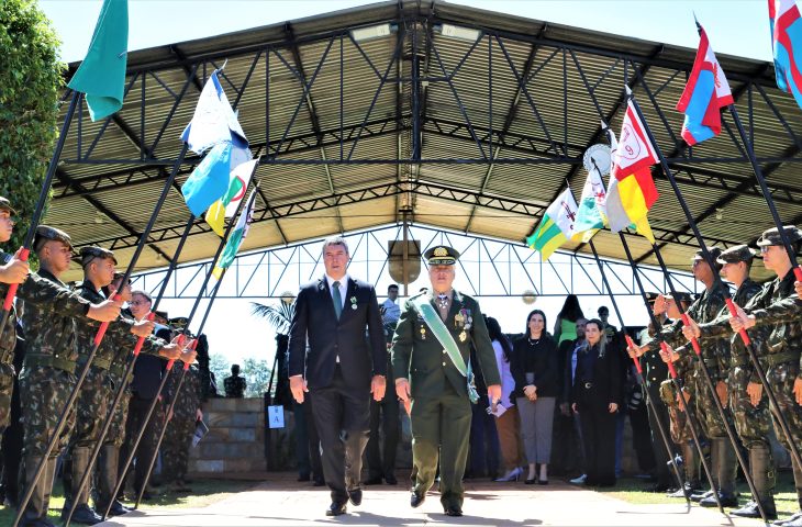 O governador Eduardo Riedel participou nesta sexta-feira (19) da celebração do “Dia do Exército”, que ocorreu na sede do CMO (Comando Militar do Oeste), em