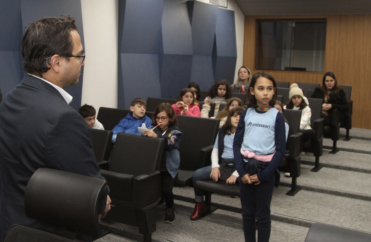 Alunos do 4º ano do Colégio Maria Montessori visitaram o Poder Legislativo durante a manhã desta sexta-feira (16) e foram acompanhados pelo deputado Pedrossian Neto