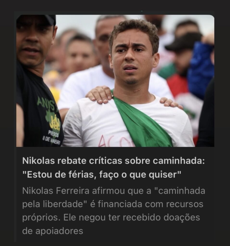 A caminhada de Nikolas Ferreira termina onde as grandes decisões começam, deixando uma pergunta clara para o eleitor: por que o exercício da liberdade de um deputado incomoda mais do que o estado atual da economia e da justiça brasileira?