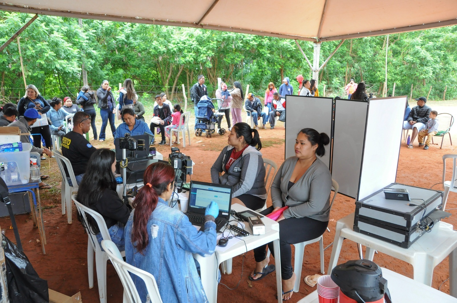 Logo nas primeiras horas da manhã, diversos moradores já se reuniam em frente ao posto de identificação itinerante montado na área do campo de futebol da aldeia. Foram distribuídas as senhas, conforme ordem de chegada, priorizando os moradores do local.