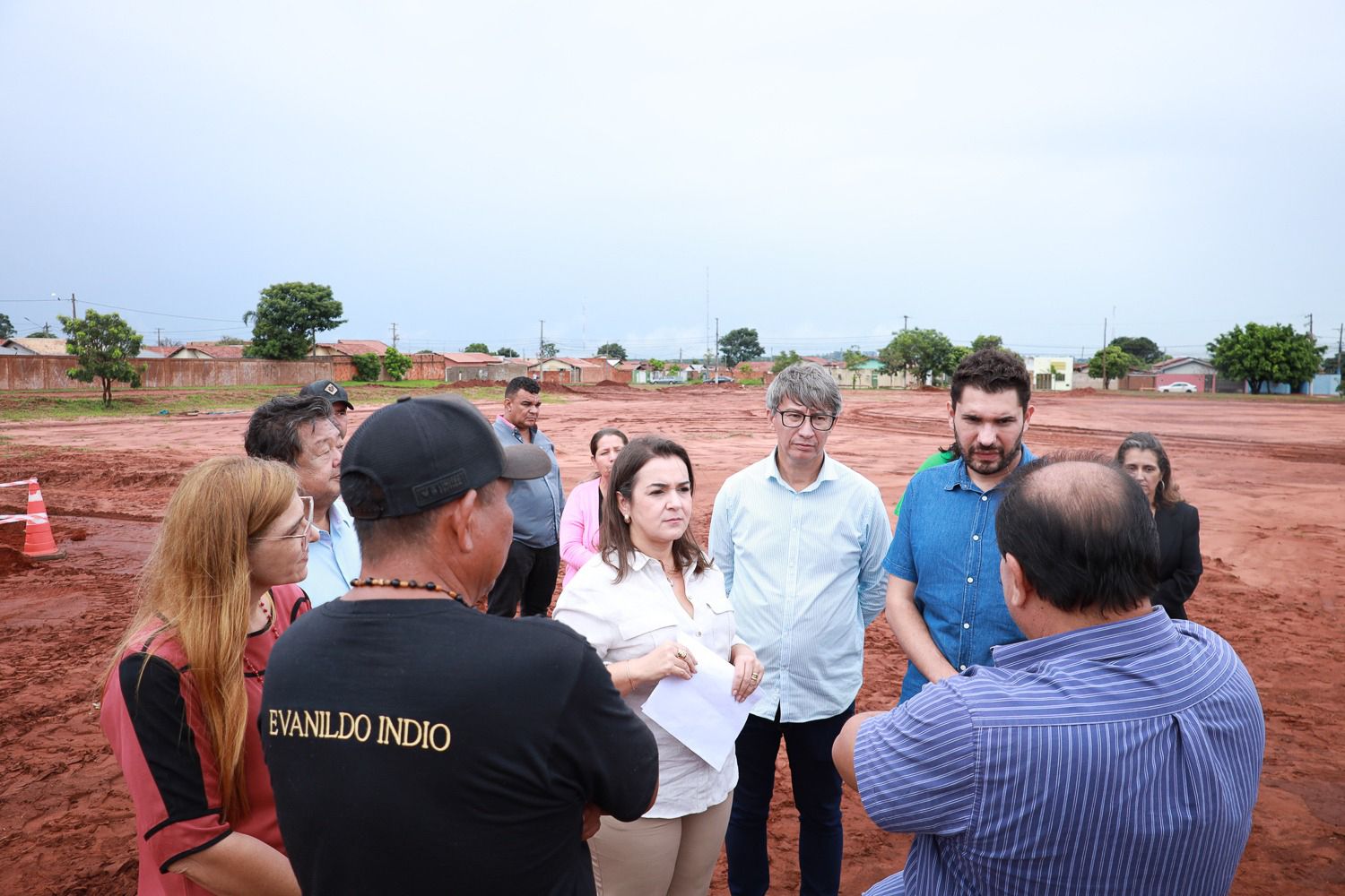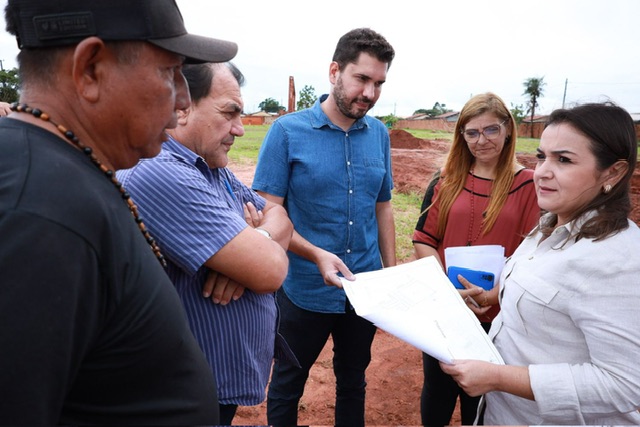 A Prefeita ressalta a escolha criteriosa do terreno, que oferece infraestrutura completa, incluindo rede de água, energia, esgoto, escolas e posto de saúde, e destaca as medidas já tomadas, como a instalação de rede de água e esgoto, com a garantia de avançar nas próximas etapas.