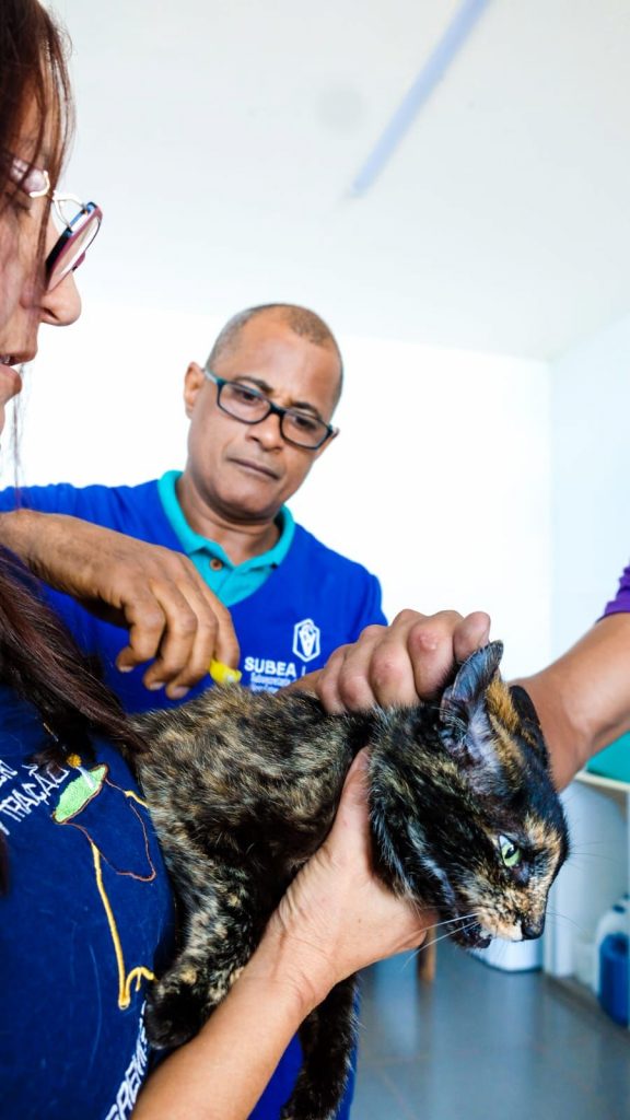 É o caso da dona Meire Aquino, que há 18 anos cuida de gatos abandonados e, hoje, possui 40 em sua casa. “O programa é muito bom, porque eu não tenho como levar tantos animais até a unidade. E a equipe que veio foi tão amorosa com meus gatos”, declara.