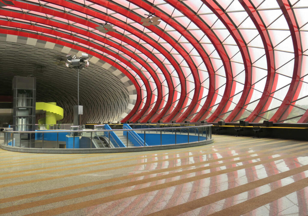 O design de Ohtake é caracterizado por sua forma alongada e curvilínea, projetada para se harmonizar com as paisagens urbanas e naturais ao redor. A fachada metálica da estrutura e suas linhas fluidas refletem o estilo arquitetônico característico de Ohtake, que frequentemente combina geometrias arrojadas com materiais contemporâneos.