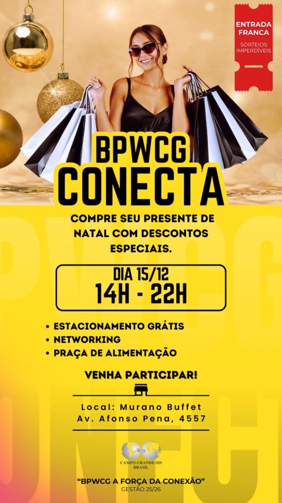 Campo Grande se prepara para receber a edição mais festiva e estratégica do ano do BPWCG Conecta. Com o tema “CONECTA BPWCG DE NATAL!”, o evento promete transformar o Murano Buffet no ponto de encontro ideal para empreendedoras, profissionais liberais e líderes de negócios que buscam fechar 2025 com chave de ouro: muita inspiração, networking de alta qualidade e o clima acolhedor de fim de ano!