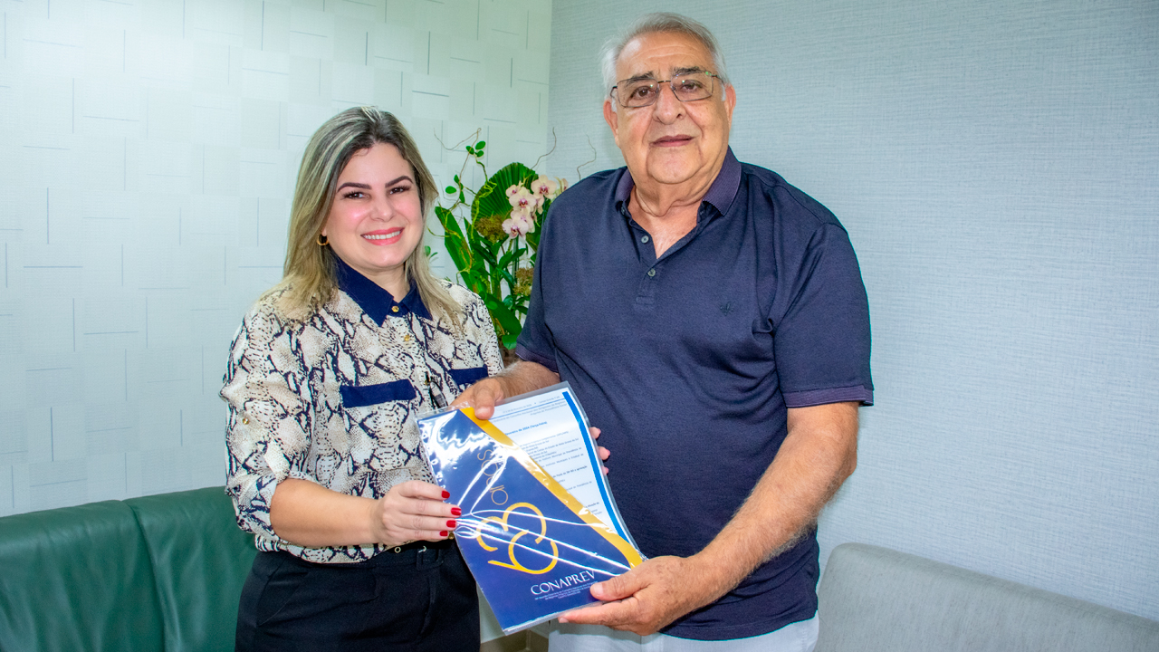 A diretora presidente do Instituto Municipal de Previdência de Campo Grande (IMPCG), Camilla Nascimento de Oliveira, esteve no Tribunal de Contas de Mato Grosso do Sul nesta segunda-feira (26), para entregar em mãos ao presidente, conselheiro Jerson Domingos, o convite da 78º Reunião do Conselho Nacional dos Dirigentes de Regimes Próprios de Previdência Social – CONAPREV. A Reunião será realizada em Campo Grande nos dias 27 e 28 de fevereiro, em comemoração aos 63 anos do IMPCG.