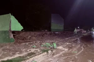 Muro de escola desaba e casa fica inundada após temporal em Coxim