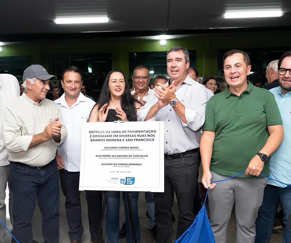 A comitiva, integrada por Riedel, Azambuja, deputados e lideranças do Estado, entregou em Guia Lopes da Laguna investimentos que somam R$ 9,8 milhões. As obras de pavimentação e drenagem nas ruas 15 de Novembro e Castro Alves, além da nova ponte de concreto sobre o Rio Feio, simbolizam o fim de problemas históricos como a poeira e o isolamento rural.