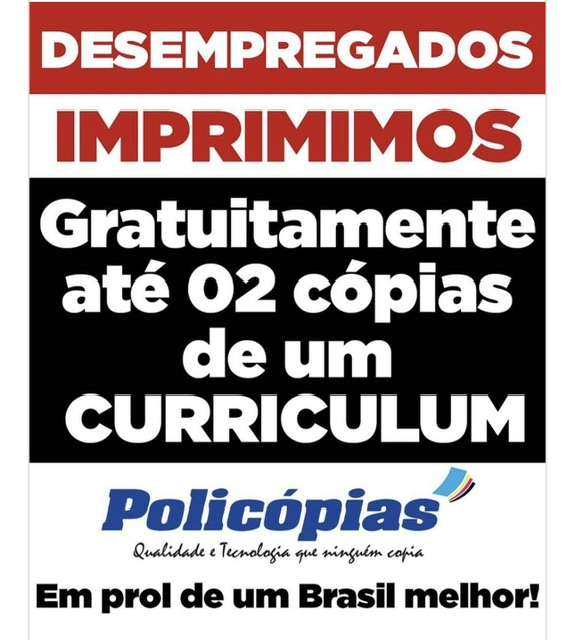 Há aproximadamente três meses, surgiu a iniciativa de oferecer o serviço gratuito de impressão e cópia de currículos nas duas lojas da Policópias.