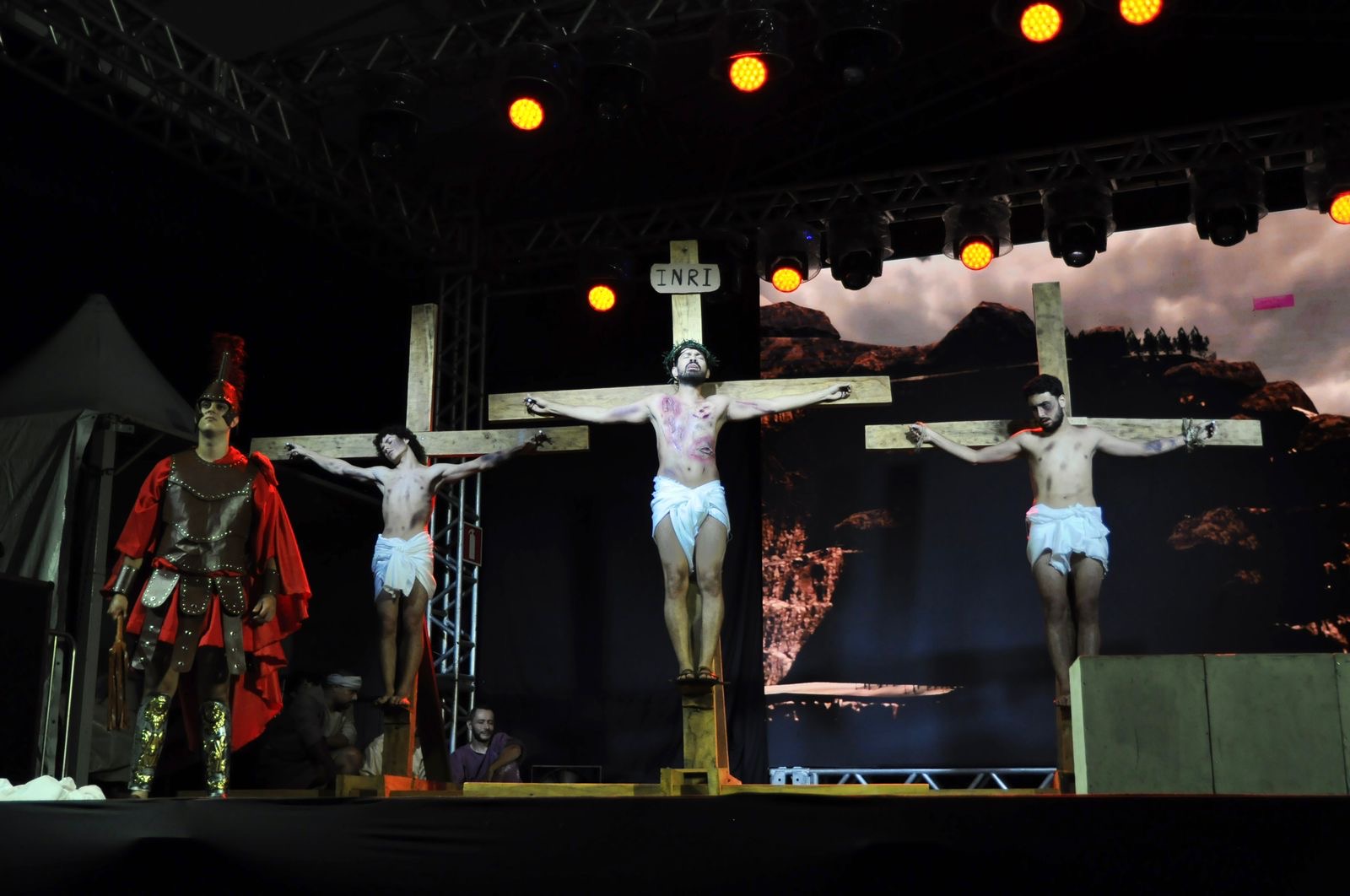 A noite da Sexta-Feira Santa (29) foi marcada por emoção e reflexão na Páscoa em Família. Centenas de fiéis acompanharam a Via Sacra de Jesus, encenada por uma equipe de 55 pessoas do grupo de teatro Senta que o Leão é Manso da Universidade Católica Dom Bosco, entre atores, bailarinas e contrarregras.