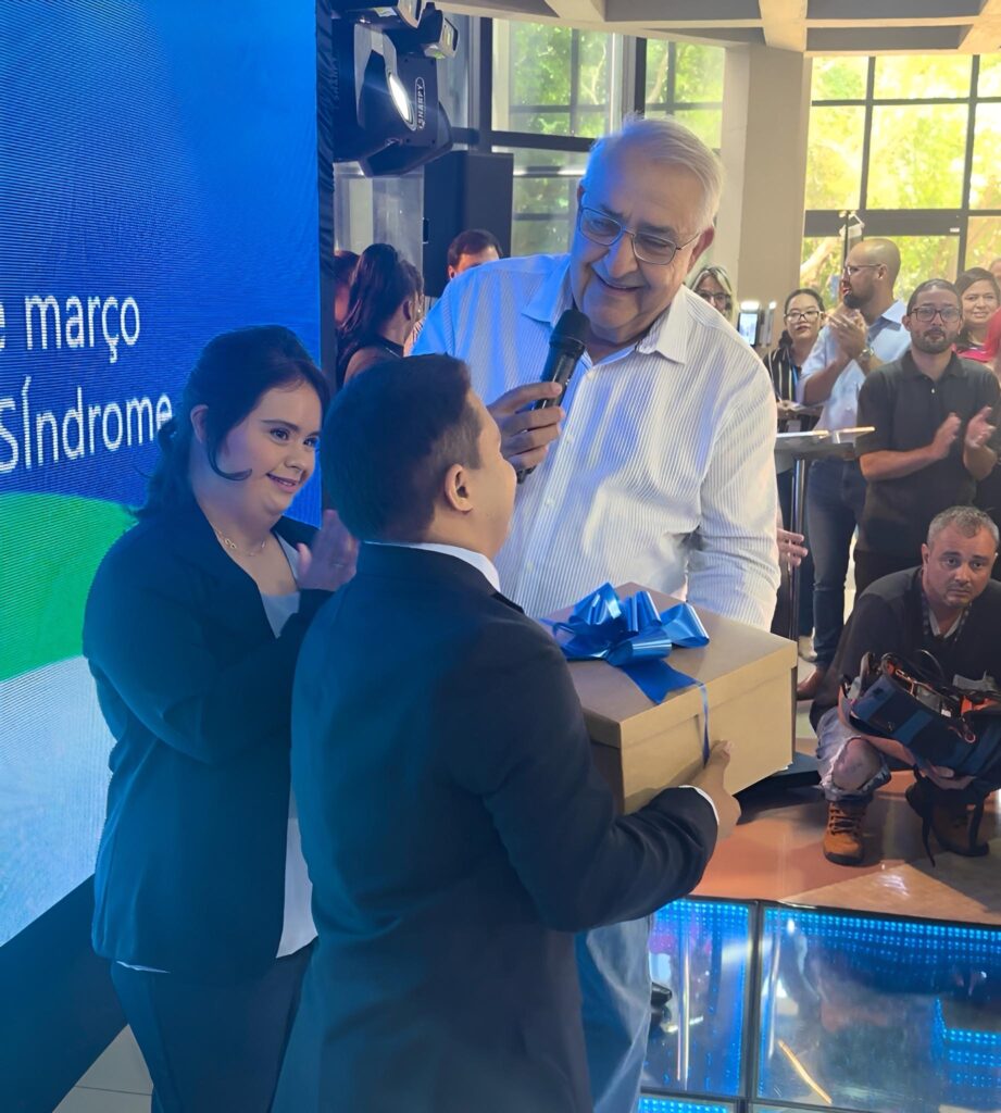A programação em celebração ao Dia Mundial da Síndrome de Down contou com mais realização de sonhos, como o momento da entrega da câmera fotográfica feita pelo presidente Jerson Domingos ao colaborador Alison, um dos fotógrafos do TCE-MS, e o sonho de Duda, que foi a entrega dos uniformes sociais aos colaboradores.