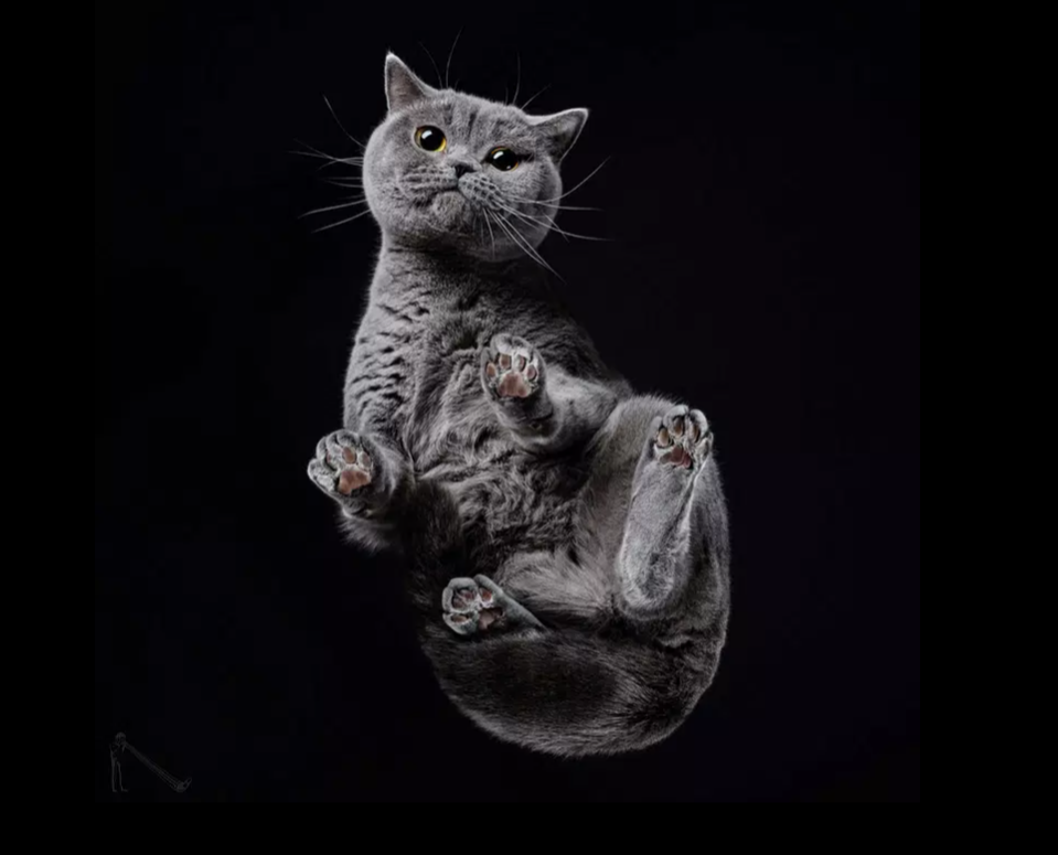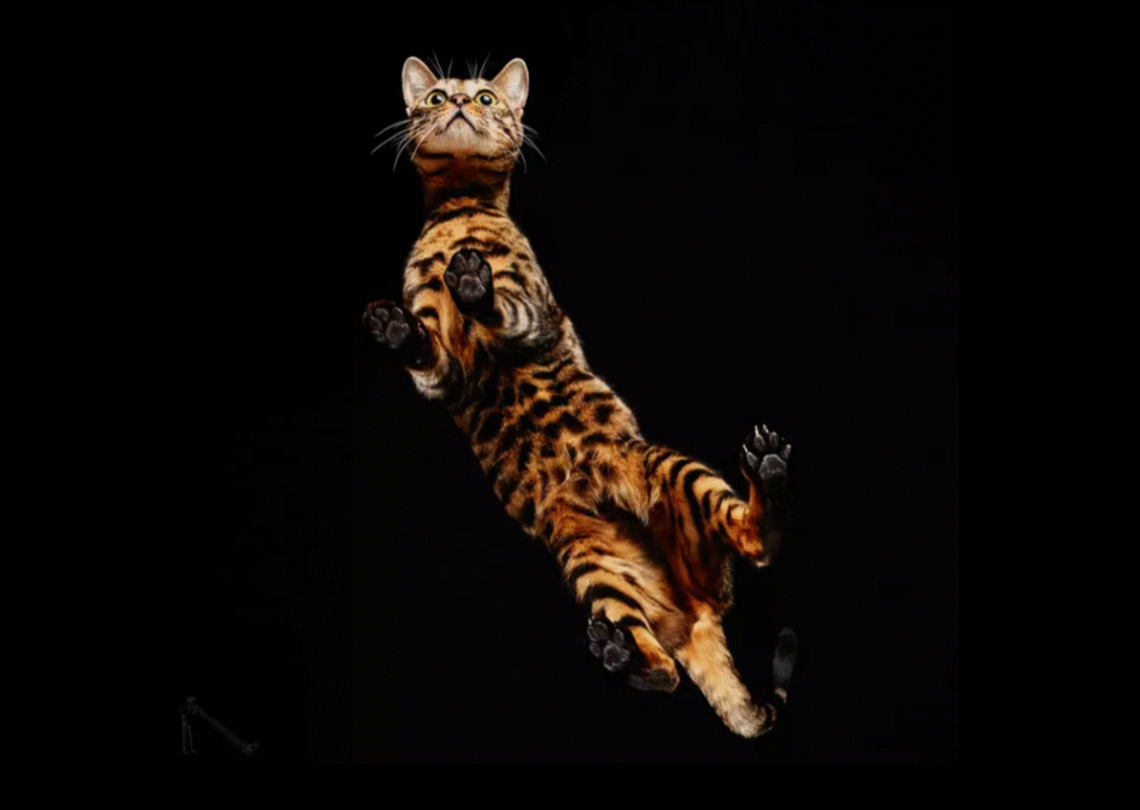 A inspiração para o projeto surgiu após ele ver fotos de um gato sobre uma superfície de vidro e decidiu recriá-la profissionalmente.