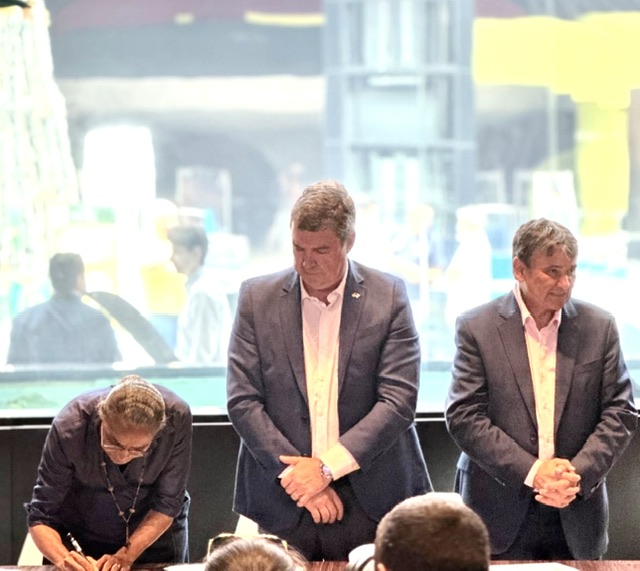 Em seguida, ainda no Bioparque, os ministros participaram do ato de sanção, pelo governador Riedel, da Lei do Pantanal e que cria o Fundo Estadual de Desenvolvimento Sustentável deste bioma.