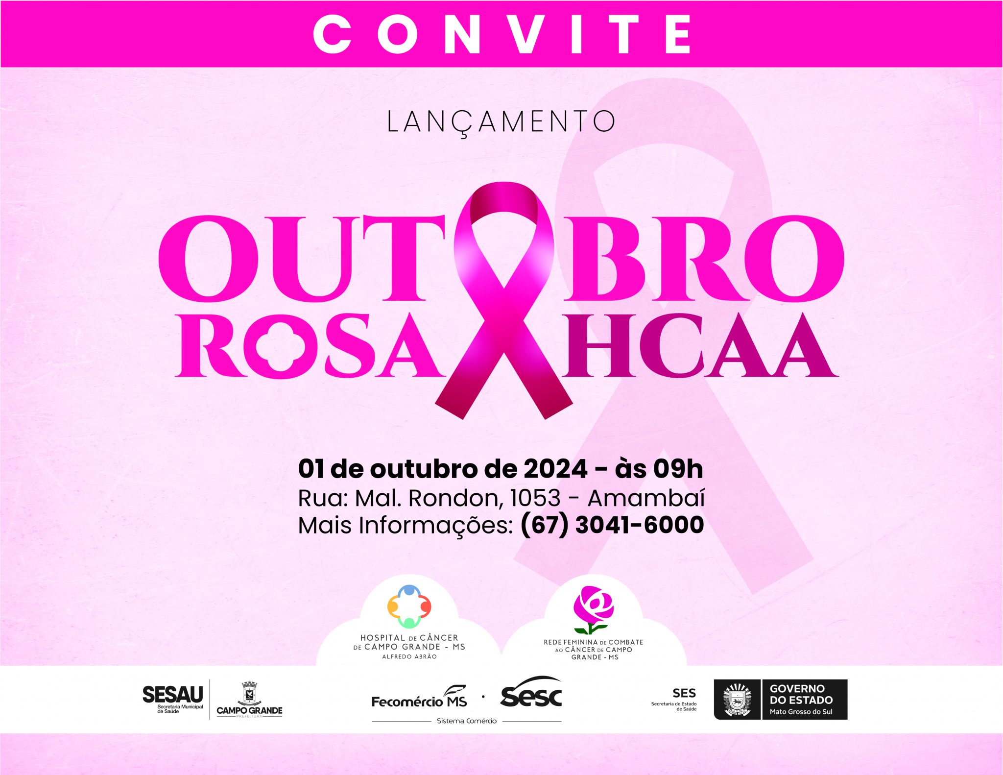 A Fundação Carmem Prudente de MS (FCPMS)- Hospital de Câncer de Campo Grande – MS Alfredo Abrão e a Rede Feminina de Combate ao Câncer abrirão oficialmente no dia 1 de outubro (terça-feira) a Campanha Outubro Rosa 2024. A partir das 9h a Diretoria Executiva da FCPMS fará cerimônia alusiva ao Outubro Rosa.