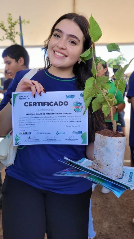 Complementando essa frente, a AGEMS marcou presença no Drive Thru da Reciclagem em 2024 e 2025. A ação democratizou o acesso de escolas a espaços de aprendizagem prática, distribuindo mais de 700 mudas nativas e engajando 650 alunos em atividades voltadas aos ODS da Agenda 2030, como saúde, água limpa e cidades sustentáveis.