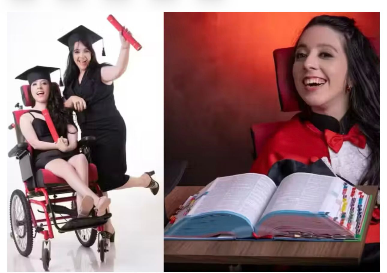 A mãe Liliane e a filha Júlia mostraram que a paralisia cerebral é um diagnóstico e que não define o destino de ninguém. Elas concluíram a faculdade de Direito em Minas Gerais e agora estudam para passar na OAB. – Foto: Arquivo Pessoal/G1