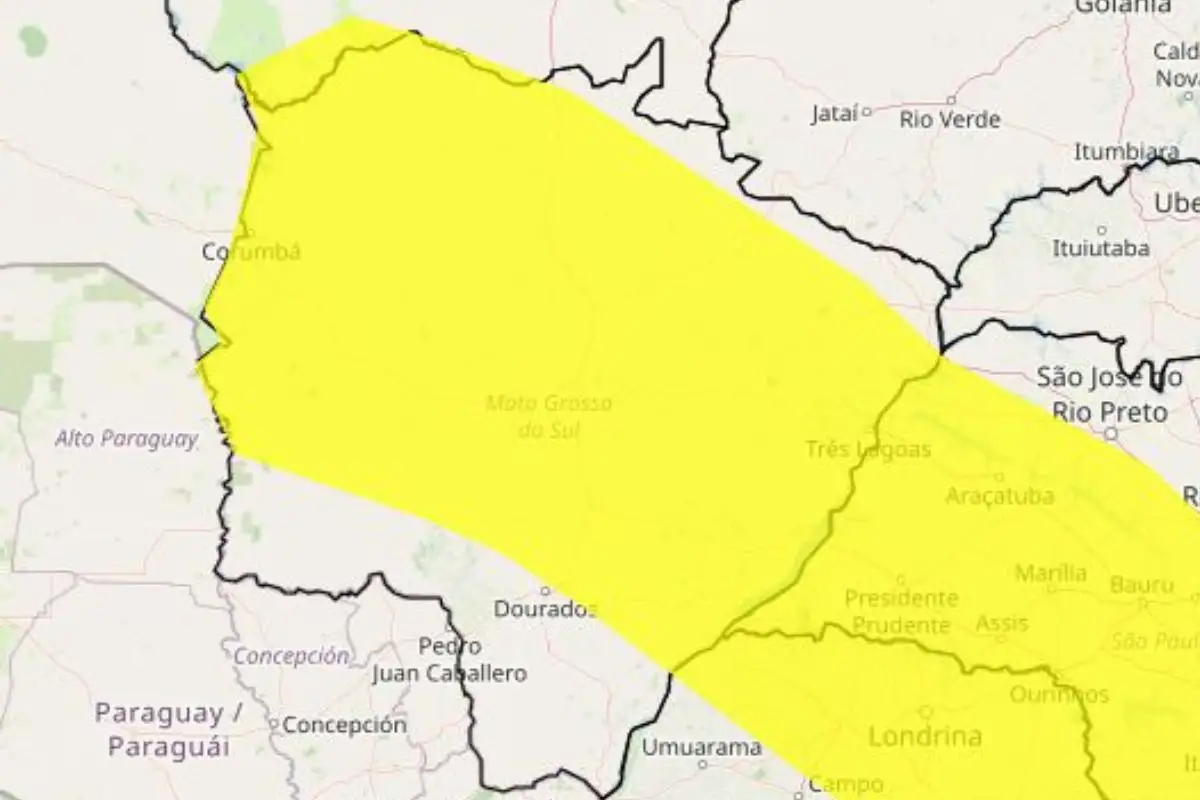 A meteorologia emitiu alerta para 60 cidades de Mato Grosso do Sul, quanto à possibilidade de chuvas intensas até às 9h de quinta-feira (21), acompanhadas de vendaval e granizo.