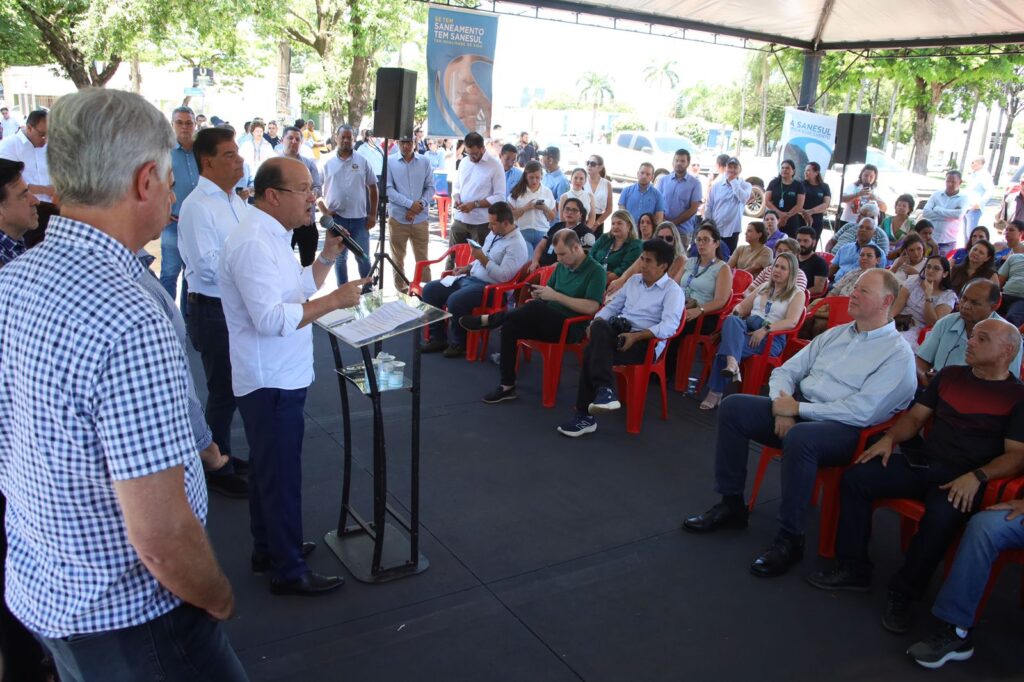 A solenidade ocorreu nesta quinta-feira (14), no escritório da Sanesul (Empresa de Saneamento de MS). Para o saneamento foram entregues as obras de novas ligações domiciliares de esgoto, implantação de uma estação elevatória (esgoto bruto) e outras adequações no valor de R$ 21,8 milhões.