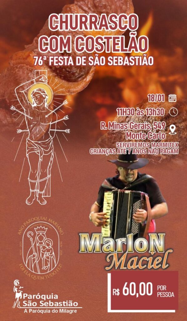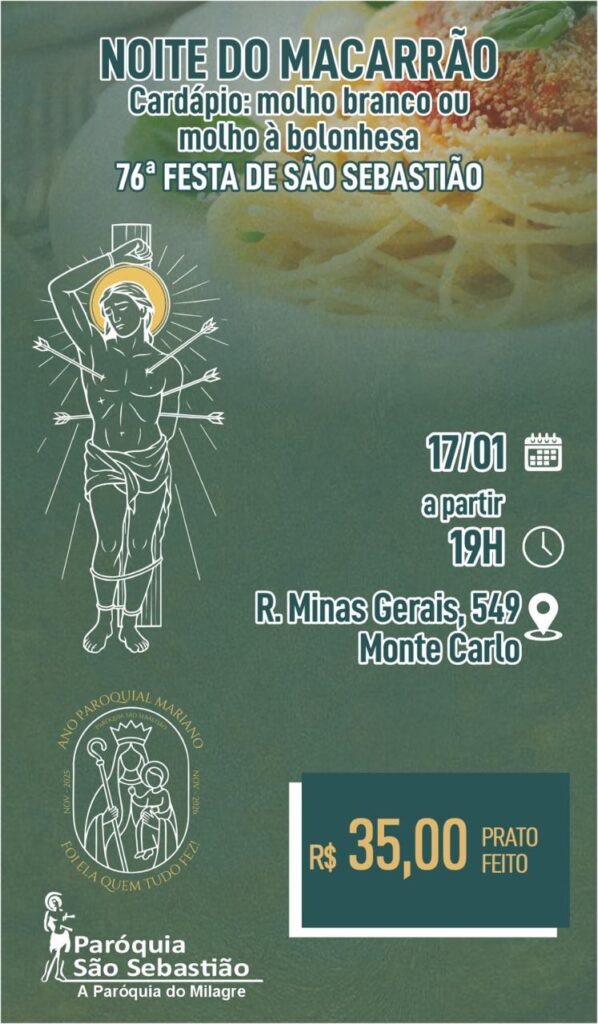 Marque na agenda, a festa será realizada na Paróquia São Sebastião, na Rua Minas Gerais, 549, bairro Monte Carlo. Campo Grande/MS.
