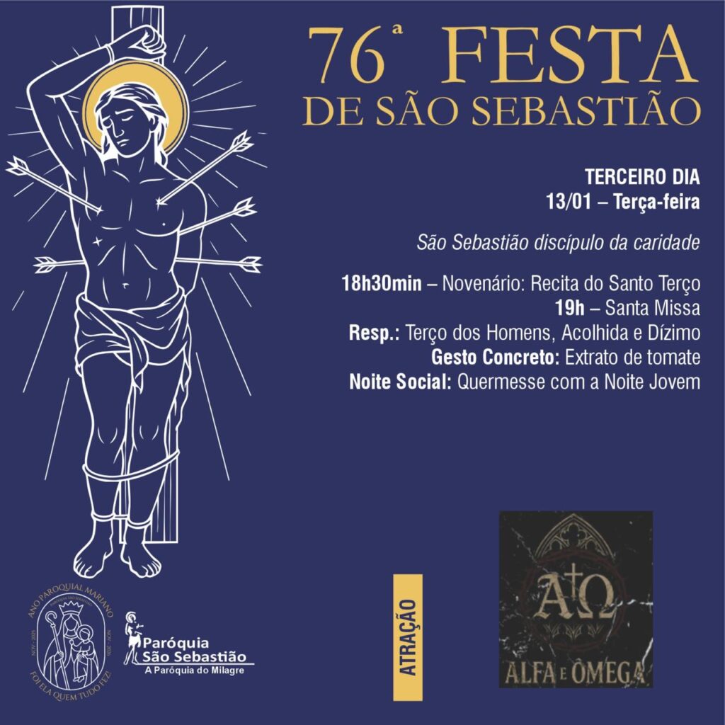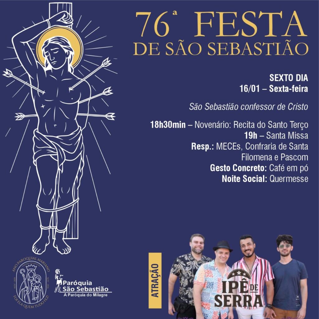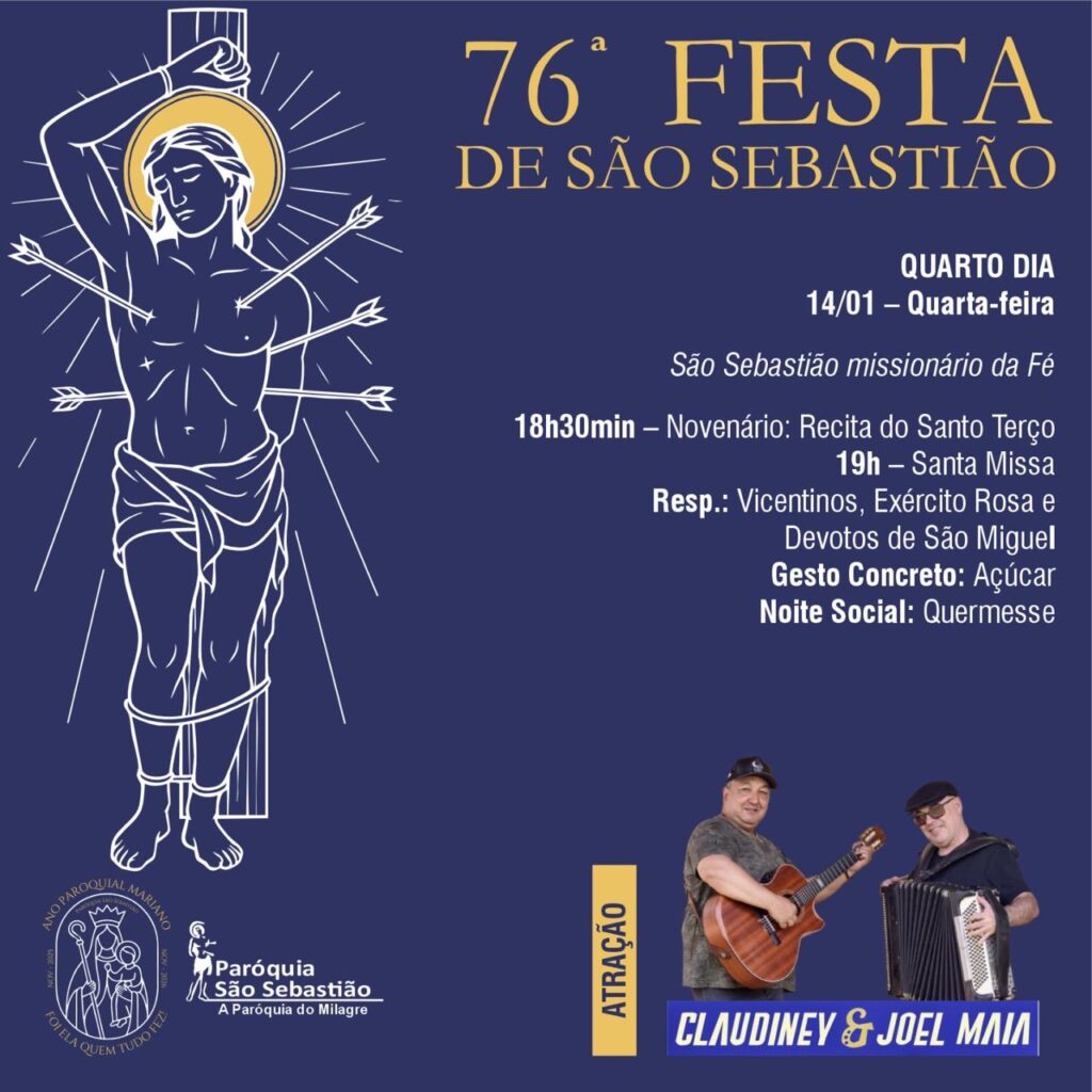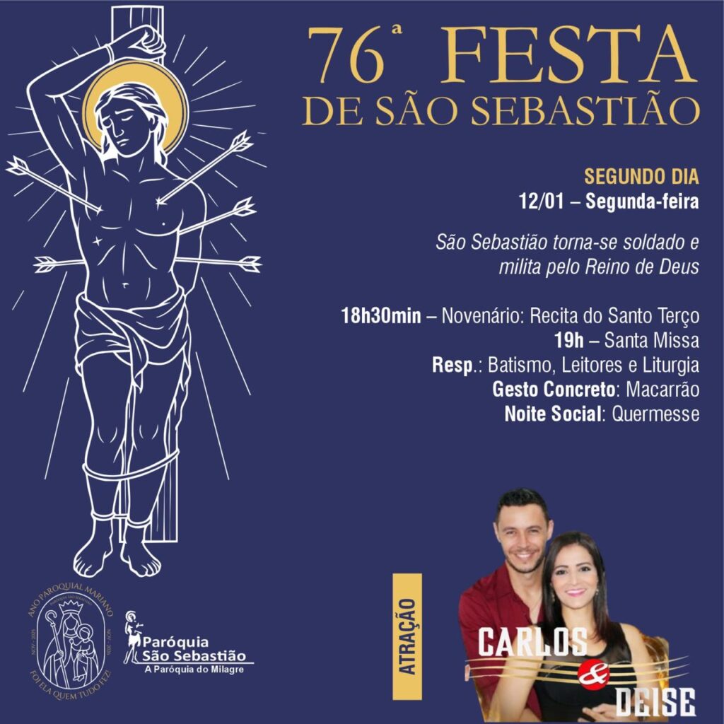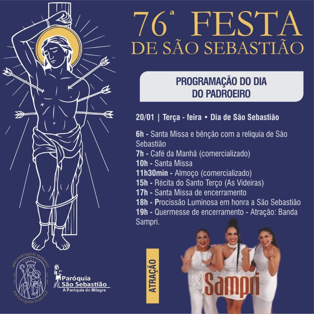 Há quase oito décadas, um sentimento de profunda renovação toma conta das ruas do bairro Monte Carlo quando o mês de janeiro se aproxima. Com muita fé, novenas, missas, quermesses, procissão e direito à sobá, churrasco de costelão, noite da macarronada, pasteladas e muita alegria, os fiéis que frequentam a Paróquia São Sebastião em Campo Grande, vão celebrar durante dez dias, a 76ª Festa de São Sebastião, entre os dias 11 e 20 de janeiro de 2024.