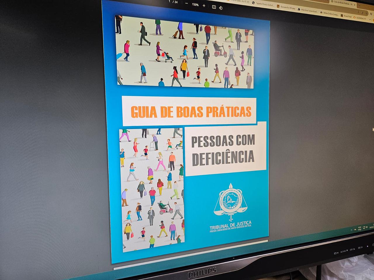 A cartilha está disponível no link https://www5.tjms.jus.br/_estaticos_/sc/publicacoes/GuiaBoasPraticasPessoasDeficienciaAcessivel.pdf.