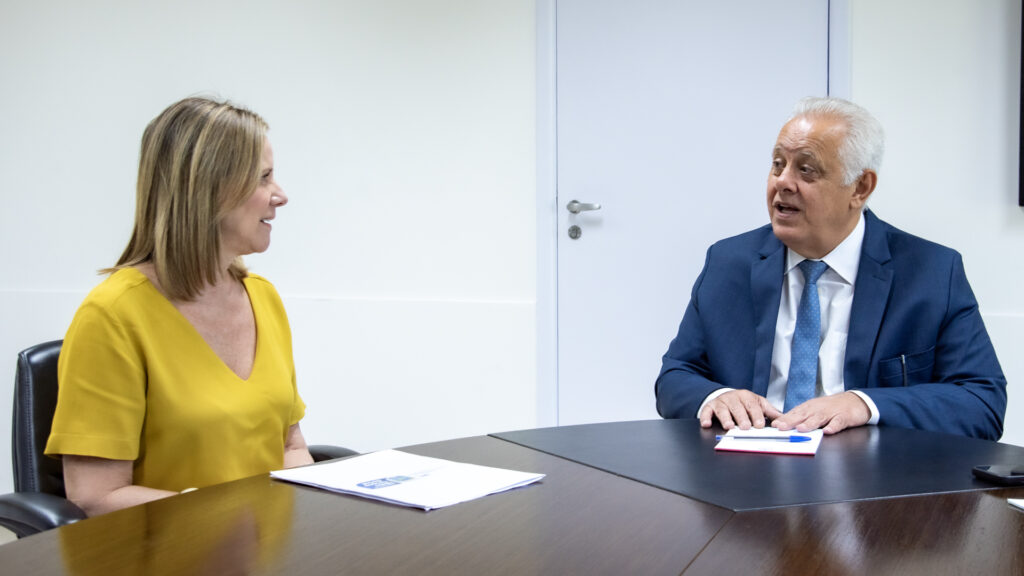 O presidente do Tribunal de Contas de Mato Grosso do Sul, conselheiro Flávio Kayatt, recebeu na manhã desta sexta-feira (23), a secretária Especial de Parcerias Estratégicas do Governo do Estado, Eliane Detoni, em uma reunião voltada ao fortalecimento institucional das instituições públicas por meio da cooperação técnica.