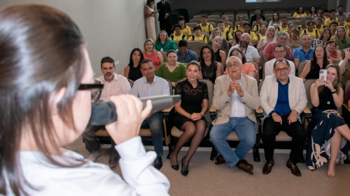 Com alegria e focada em sua participação, ao chegar no auditório da Escola Superior de Controle Externo (Escoex), a professora Rhuanna cumprimentou os servidores da Corte de Contas que aguardavam ansiosamente pela inédita aula, que teve como tema – O Alfabeto.