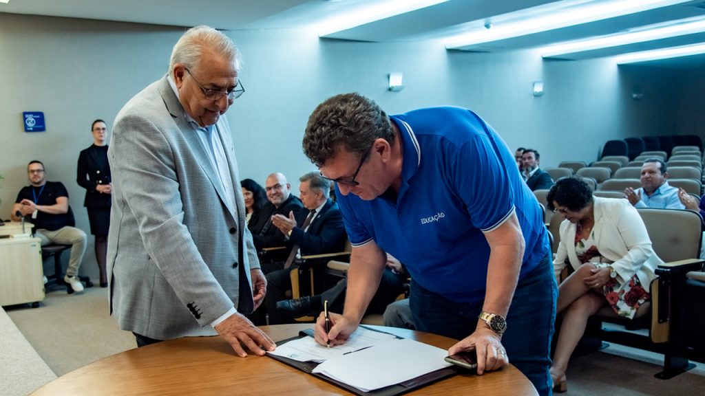 Assinaram o Termo o presidente do TCE-MS, conselheiro Jerson Domingos; o procurador-geral de Justiça, Alexandre Magno Benites de Lacerda; o secretário de Estado de Justiça e Segurança Pública, Antônio Carlos Videira; a presidente do Conselho Estadual de Trânsito, Regina Maria Duarte; o comandante-geral da Polícia Militar, Renato dos Anjos Garnes; o diretor-presidente do Detran, Rudel Trindade Júnior; o secretário de Estado de Educação, Hélio Daher; o superintendente da Polícia Rodoviária Federal em MS, João Paulo Pinheiro Bueno; o diretor-presidente da Agems, Carlos Alberto de Assis; o diretor-presidente da Agesul, Mauro Azambuja Rondon Flores; o superintendente regional do DNIT, Euro Nunes Veranis Júnior; o diretor do SEST/SENAT, Herivelto do Carmo Moisés; a presidente do Conselho de Acompanhamento e Controle Social do FUNDEB/MS, Celina de Mello e Dantas Guimarães; o presidente da União dos Dirigentes Municipais de Educação de MAS, Guerino Perius; e o presidente da Assomasul, Valdir Couto de Souza Júnior.