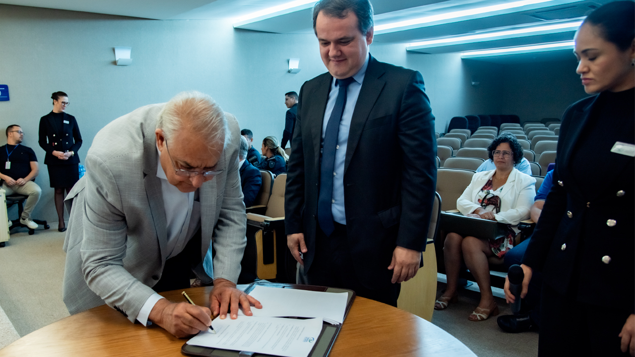 Assinaram o Termo o presidente do TCE-MS, conselheiro Jerson Domingos; o procurador-geral de Justiça, Alexandre Magno Benites de Lacerda; o secretário de Estado de Justiça e Segurança Pública, Antônio Carlos Videira; a presidente do Conselho Estadual de Trânsito, Regina Maria Duarte; o comandante-geral da Polícia Militar, Renato dos Anjos Garnes; o diretor-presidente do Detran, Rudel Trindade Júnior; o secretário de Estado de Educação, Hélio Daher; o superintendente da Polícia Rodoviária Federal em MS, João Paulo Pinheiro Bueno; o diretor-presidente da Agems, Carlos Alberto de Assis; o diretor-presidente da Agesul, Mauro Azambuja Rondon Flores; o superintendente regional do DNIT, Euro Nunes Veranis Júnior; o diretor do SEST/SENAT, Herivelto do Carmo Moisés; a presidente do Conselho de Acompanhamento e Controle Social do FUNDEB/MS, Celina de Mello e Dantas Guimarães; o presidente da União dos Dirigentes Municipais de Educação de MAS, Guerino Perius; e o presidente da Assomasul, Valdir Couto de Souza Júnior.