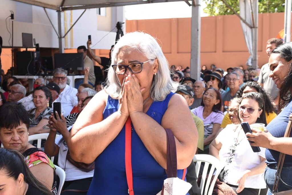 Entre os contemplados, a aposentada Edilma Cintra de Oliveira, de 65 anos, não conseguiu conter as lágrimas. “Nossa, eu nem consigo falar. Isso aqui é um presente de Deus na minha vida. Quando vi esse monte de gente, não acreditei que meu nome seria sorteado, mas foi. Eu tô feliz demais”, disse, com a voz embargada.